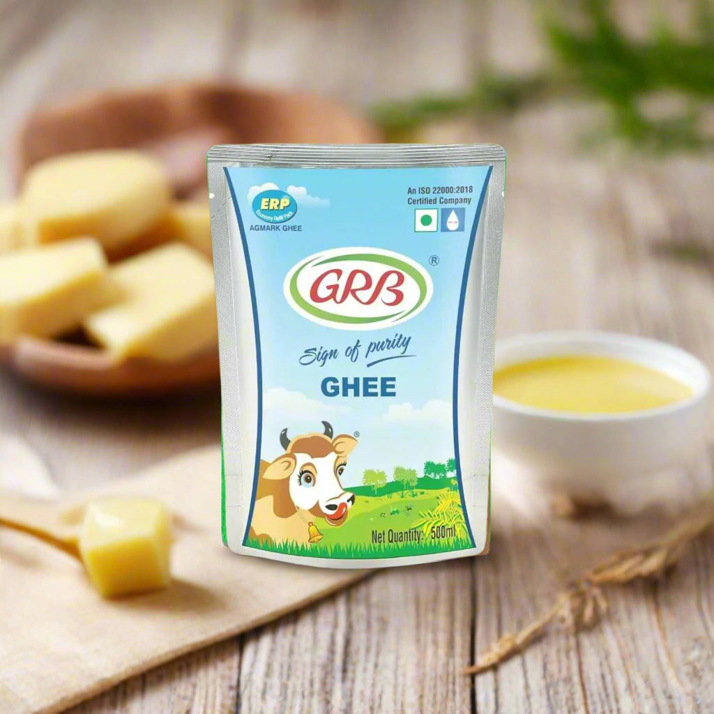 Premium clarified ghee made from cow's milk, granular texture, Rich aroma & traditional homemade taste.