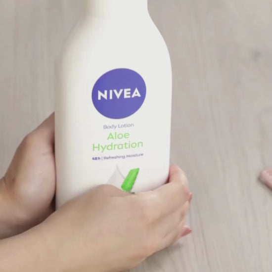 Transform your dry skin with the NIVEA Aloe & Hydration body lotion. Providing 5in1 Complete Care - 1. 48h Deep Moisture 2. Refreshing care 3. Smooth skin feel 4. Non-greasy 5. Healthy looking skin Enriched with a combination of caring ingredients, including NIVEA's Deep Moisture Serum and natural aloe vera, this body lotion protects the skin and delivers fast refreshing moisture. Some areas of skin dry out quicker than others. That's why it's important to give it extra care all year round and give your skin all that it deserves. Be there for your skin with NIVEA Aloe & Hydration body lotion. Present in over 160 countries, NIVEA is the world's no.1 skin care brand* with more than 100 years of experience.